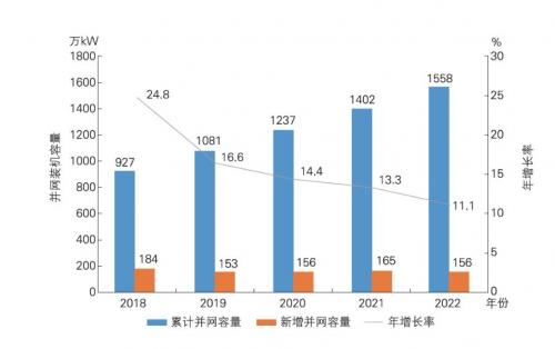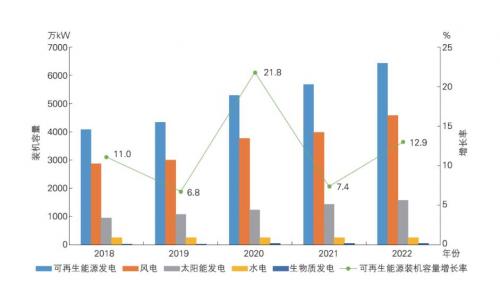 2018-2022年可再生能源裝機(jī)容量及年增長率變化對(duì)比