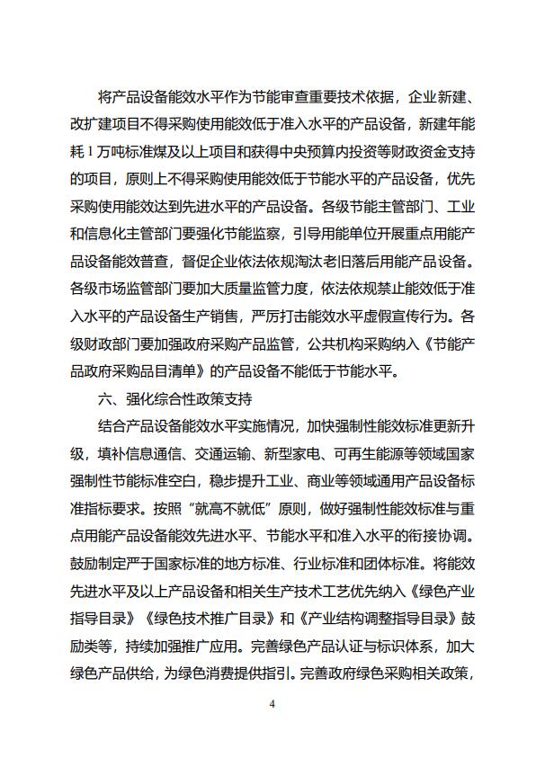 征求意見稿還提出,強化綜合性政策支持。結(jié)合產(chǎn)品設(shè)備能效水平實施情況,加快強制性能效標(biāo)準(zhǔn)更新升級,填補可再生能源等領(lǐng)域國家強制性節(jié)能標(biāo)準(zhǔn)空白,穩(wěn)步提升工業(yè)、商業(yè)等領(lǐng)域通用產(chǎn)品設(shè)備標(biāo)準(zhǔn)指標(biāo)要求。