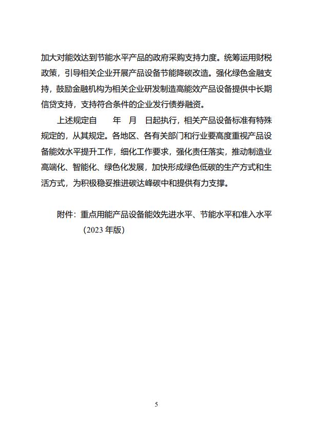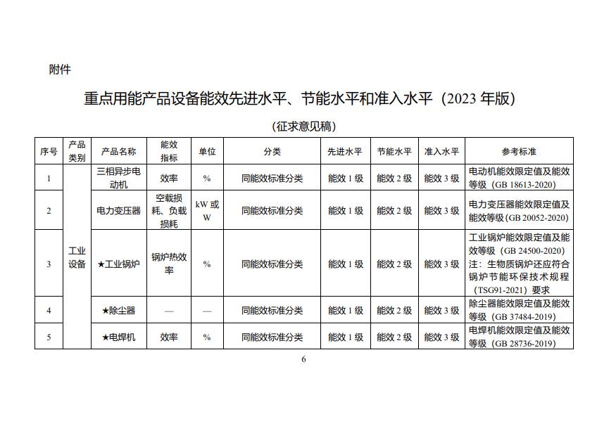 附件:關(guān)于發(fā)布《重點用能產(chǎn)品設(shè)備能效先進(jìn)水平、節(jié)能水平和準(zhǔn)入水平(2023年版)》的通知(征求意見稿)