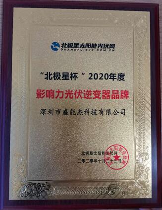 盛能杰榮獲2020“北極星杯”影響力光伏逆變器品牌獎