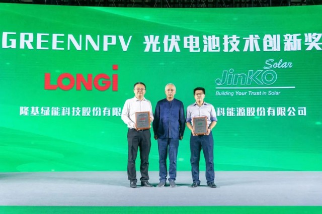 會上,隆基綠能科技股份有限公司榮獲2022年度“GREENPV 光伏電池技術創(chuàng)新獎”;隆基綠能創(chuàng)始人、總裁李振國榮獲2022年度“GREENPV 光伏貢獻菁英獎”;隆基綠能中央研究院副院長徐希翔博士榮獲2022年度“GREENPV 光伏成就菁英獎”。