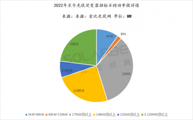 從招標(biāo)情況來看,組串式逆變器占比八成以上,集中式逆變器占不到兩成。不同功率段招標(biāo)中,175kW及以上招標(biāo)規(guī)模最多,占比34%,196kW及以上占比25%,3.125MW及以上占比23%。