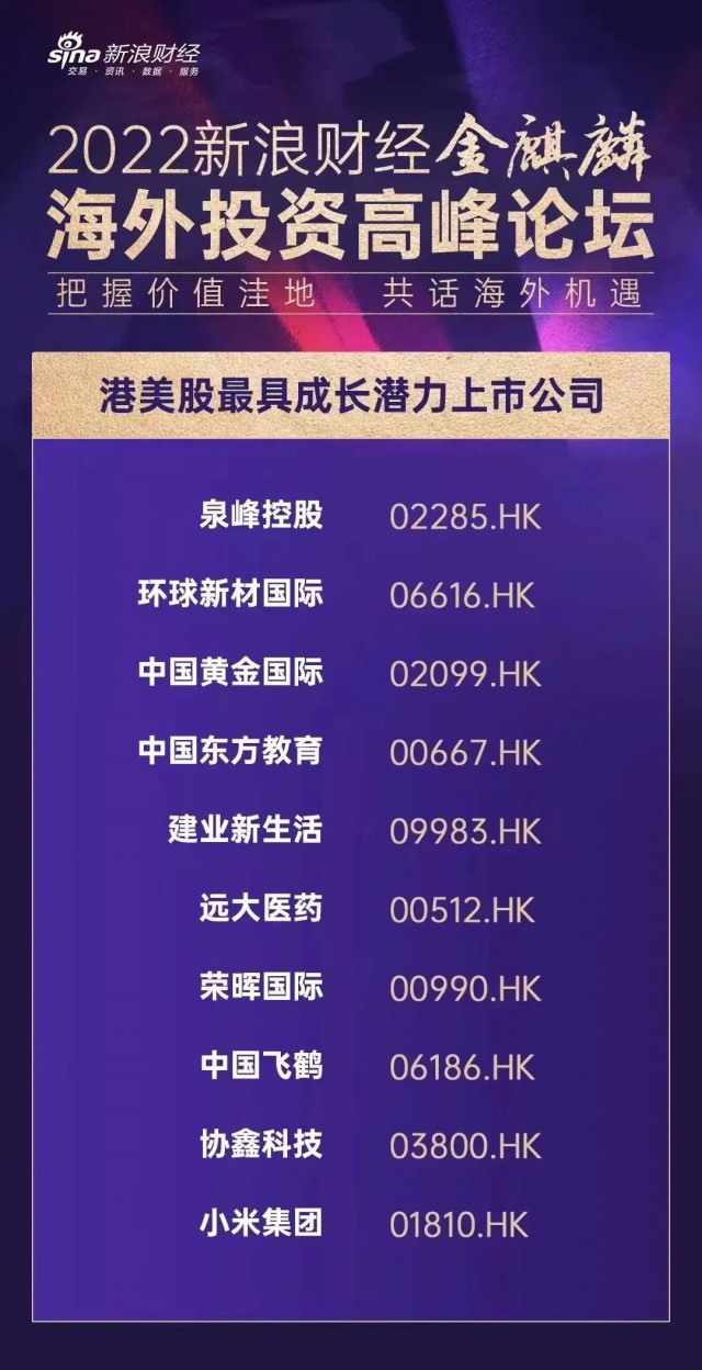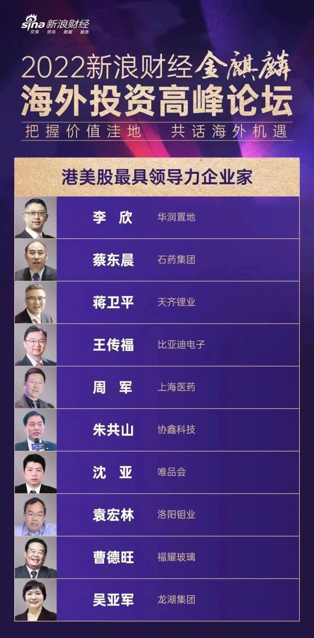 2022年9月23日,在新浪財(cái)經(jīng)主辦的2022年金麒麟海外投資峰會(huì)暨港美股最佳上市公司評(píng)選活動(dòng)中,協(xié)鑫科技(03800.HK)憑借在光伏材料領(lǐng)域的科技創(chuàng)新與行業(yè)貢獻(xiàn),榮膺“2022新浪財(cái)經(jīng)港美股最具成長潛力上市公司”,協(xié)鑫科技董事局主席朱共山先生榮獲“2022新浪財(cái)經(jīng)港美股最具領(lǐng)導(dǎo)力企業(yè)家”稱號(hào),獲授該稱號(hào)的還有曹德旺、王傳福等10位杰出企業(yè)家。