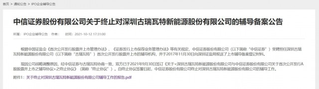 大股東退出,加上古瑞瓦特的進入資本市場的節(jié)奏緩慢,2021年9月,古瑞瓦特與中信證券終止了上市輔導,這意味著古瑞瓦特首次公開發(fā)行A股股票并上市的計劃生變。據(jù)中信證券2021年10月公布的信息,古瑞瓦特終止上市輔導的理由為“公司戰(zhàn)略調(diào)整”。