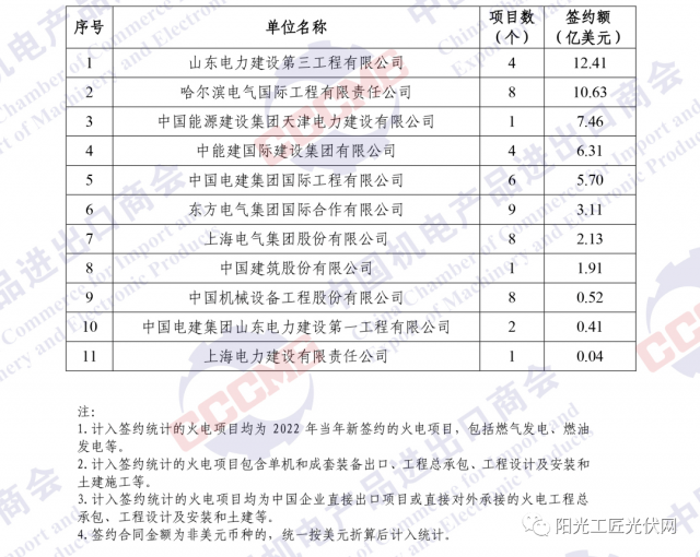 2022年中國企業(yè)境外火電項目簽約額排名