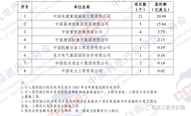 2022年中國企業(yè)境外水電項目簽約額排名