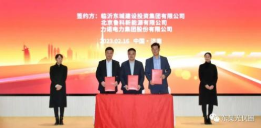 臨沂市河?xùn)|區(qū)區(qū)委常委、副區(qū)長范浩,中能建華東電力裝備有限公司董事長祝瑞銀,力諾集團(tuán)董事長兼總裁高元坤,魯科新能源董事長李克,臨沂東城建設(shè)投資集團(tuán)有限公司董事長宋連運等領(lǐng)導(dǎo)出席儀式。