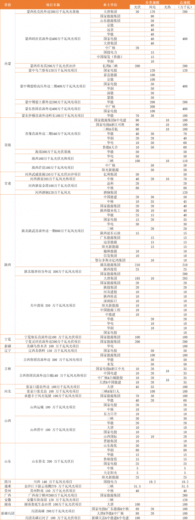 國家級(jí)大基地規(guī)劃及業(yè)主名單