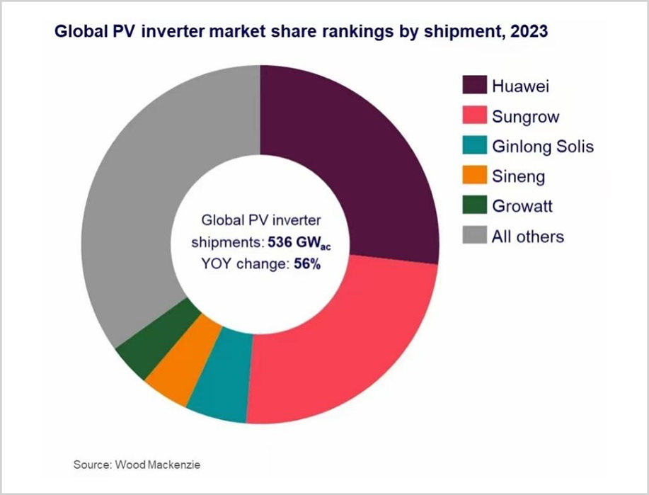 逆變器領(lǐng)域則完全不同,過去十年在全球市場真正有絕對實(shí)力的只有陽光電源和華為,競爭環(huán)境相對寬松,目前兩家企業(yè)合計(jì)控制了大約一半的市場,還有很大的進(jìn)擊空間。