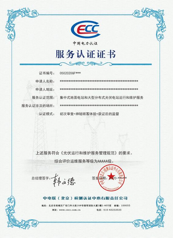 中國電力網(wǎng)編輯了解到,光伏運維服務(wù)認(rèn)證是依據(jù)《光伏運行和維護服務(wù)管理規(guī)范》,對申請組織的服務(wù)能力、服務(wù)過程、服務(wù)業(yè)績進行審查并按照管理規(guī)范附錄中給出的評分標(biāo)準(zhǔn)進行量化評價,確定其運維服務(wù)星級水平的第三方認(rèn)證審查,并用以證明其運維管理和服務(wù)能力能夠得到廣泛信任。具體流程詳見《光伏運維服務(wù)認(rèn)證工作流程圖》
