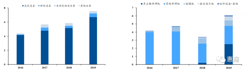 公司于 2009 年進(jìn)入光伏行業(yè),致力于光伏電池和光伏組件的自動(dòng)化成套設(shè)備的開發(fā)設(shè)計(jì)、生產(chǎn)和銷售,于 2013 年首創(chuàng)國產(chǎn)電池片串焊機(jī),在 2017 年成功研發(fā)并量產(chǎn)多主柵串焊機(jī)和半片串焊機(jī)。公司光伏設(shè)備業(yè)務(wù)的政策聚焦于行業(yè)優(yōu)質(zhì)客戶,經(jīng)過多年來的積累,已經(jīng)形成較強(qiáng)的技術(shù)優(yōu)勢和品牌效應(yīng),設(shè)備受到隆基股份、晶科能源、中國節(jié)能等業(yè)內(nèi)一流廠商的青睞。