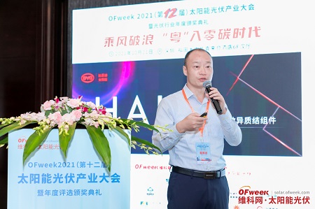 蘇州騰暉光伏技術(shù)有限公司研發(fā)總監(jiān)錢洪強先生,就基于異質(zhì)結(jié)電池方面的問題,發(fā)表了主題為《雙碳目標(biāo)下光伏技術(shù)發(fā)展的趨勢討論》的精彩演講。
