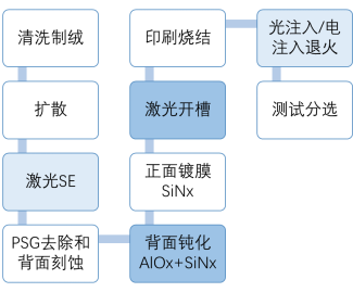 PERC技術以背面鈍化層的沉積和激光開槽為主,后續(xù)在此基礎上進行工藝改進優(yōu)化時增加了正面的SE激光和光注入/電注入退火等工藝,未來隨著光伏技術的不斷進步,為提升PERC電池的量產效率,也必將會對電池工藝進行進一步的改進與優(yōu)化。