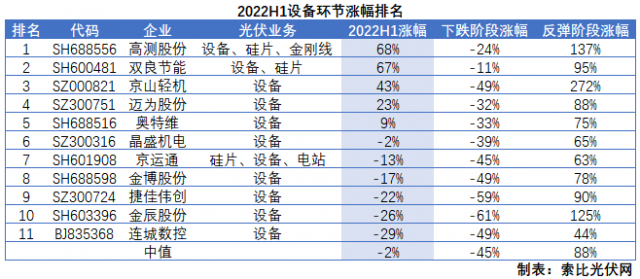 總體而言,實現正收益的個股主要具備以下幾個特征:一是跨界者,擁有較高的業(yè)績釋放預期且過往的業(yè)績基數相對較低,比如高測股份、雙良節(jié)能、鈞達股份;二是核心技術領先者,比如TCL中環(huán);三是硅料上行周期受益者,比如通威股份、特變電工;四是歐洲戶儲爆發(fā)受益者,比如德業(yè)股份、錦浪科技;五是HJT概念股,比如京山輕機、邁為股份;六是擁有較高業(yè)績預期的新股,比如昱能科技、晶科能源、禾邁股份。