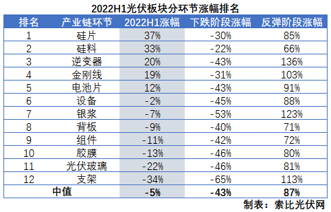 硅料、硅片半年漲幅居前,逆變器成上行階段最強主線