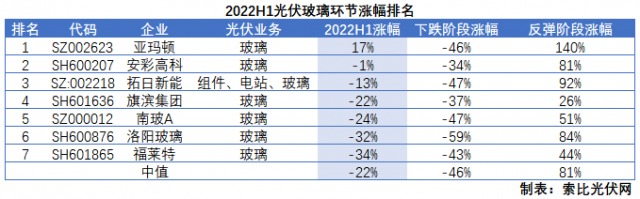 在負收益的環(huán)節(jié)中,缺少業(yè)績支撐且技術層面相對穩(wěn)定的支架、光伏玻璃、膠膜等環(huán)節(jié)整體跌幅居前,這三個環(huán)節(jié)中僅有亞瑪頓一家光伏玻璃個股實現正收益,其它14只標的全部為負收益。