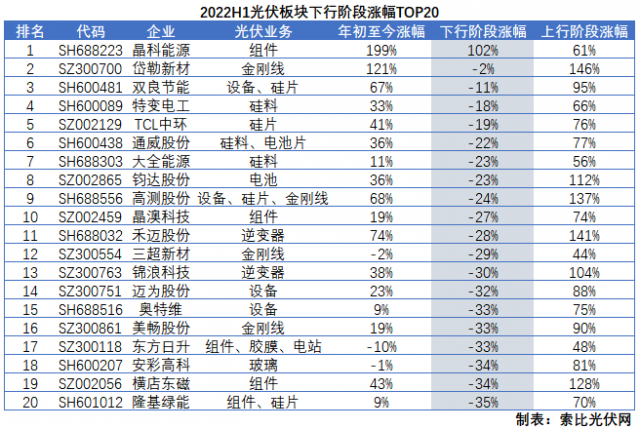 2022年上半年,光伏板塊在宏觀環(huán)境和行業(yè)基本面的共同作用下,經歷了一輪大悲大喜的極端行情,在一度暴跌39%的情況下,4月27日A股市場企穩(wěn)后又暴漲60%。在這輪急漲急跌的行情中,既體現了光伏板塊的成長屬性,又彰顯了行業(yè)基本面的高景氣——畢竟在美聯儲加息周期內,成長性板塊的表現相對不佳,但光伏板塊在上行行情中卻有眾多個股再創(chuàng)歷史新高。