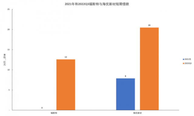 營運(yùn)壓力的陡增,也迫使企業(yè)提高借貸規(guī)模。截至2022Q3,福斯特的短期借款規(guī)模達(dá)到創(chuàng)紀(jì)錄的12.59億元,要知道,自上市以來,公司的短期借款最高不超過2000萬。而海優(yōu)新材的短期借款規(guī)模更是達(dá)到了20.48億元,相比于2021年全年提高160%。受此影響,兩者的資產(chǎn)負(fù)債率分別達(dá)到23.43%和59.14%,相比于2021年的10.94%和37.21%分別提升114%和59%。