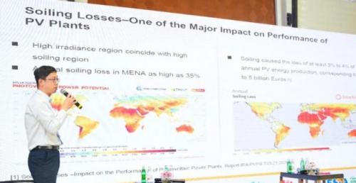 張曦在討論中指出,清掃機器人系統(tǒng)(ARCS)在減少光伏電站灰損方面發(fā)揮了重要作用,通過高頻、高效清掃組件,能夠明顯降低電站灰損和運維成本。在大型電站早期設(shè)計階段,將清掃機器人與光伏系統(tǒng)其他核心因素,如組件、跟蹤支架、及電站排布方式進行綜合考慮,能夠最大化提高系統(tǒng)的兼容性和性能。在中東地區(qū),將清掃機器人集成到電站系統(tǒng)中已成為共識,智能清掃機器人成為當?shù)毓夥娬緲伺涞?ldquo;第四大件”。