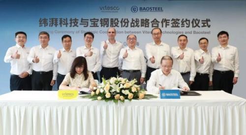 緯湃科技亞太區(qū)采購及供應商質量管理部總監(jiān)陳珺與寶鋼股份總經理助理、營銷中心總經理彭俊作為雙方代表簽署戰(zhàn)略合作協議。緯湃科技中國區(qū)總裁顧睿華(Gregoire Cuny)以及寶鋼股份黨委常委兼副總經理胡宏等雙方有關領導出席并見證了這一里程碑時刻。