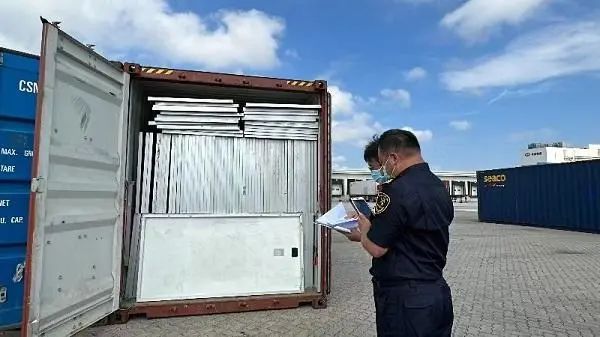 圖說:洋山海關在進口太陽能組件(舊)中查獲固廢。談鑫晨 攝