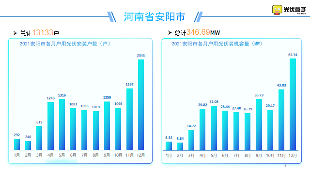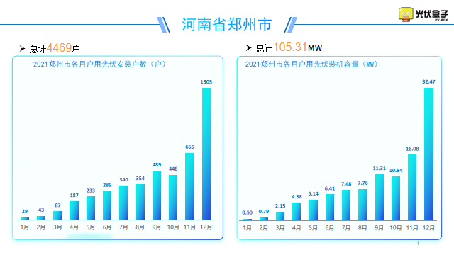 2021年河南省戶用光伏安裝了15.41萬戶,12月份安裝戶數(shù)占全年的22.66%。