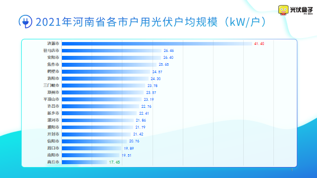 濟源市是河南省戶用光伏規(guī)模最高的市,為41.4kW/戶。