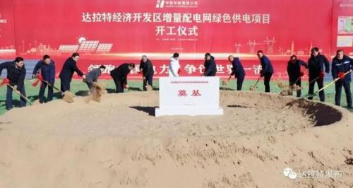 儀式上,與會人員共同為達(dá)拉特經(jīng)濟(jì)開發(fā)區(qū)增量配電網(wǎng)綠色供電項(xiàng)目奠基培土。