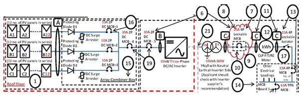 在FIT政策鼓勵下,許多廣東區(qū)域的EPC紛紛涌入香港,開展相關光伏電站項目建設。按照要求,業(yè)主需向兩家電力公司備案申請,獲批后再進行項目安裝和并網,直至電力公司現(xiàn)場驗收通過方可取得最終補貼。但值得一提的是,香港地區(qū)無論是光伏系統(tǒng)的安裝要求還是驗收標準,都跟中國大陸存在很大不同。以下是盛能杰科技香港本土合作伙伴開發(fā)的一個戶用項目,可以給大家一些參考: