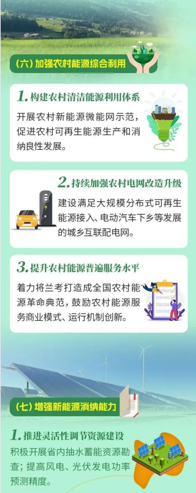 加大農(nóng)村電網(wǎng)基礎(chǔ)設(shè)施投入,加快推進(jìn)新一輪農(nóng)村電網(wǎng)改造升級,持續(xù)推動脫貧地區(qū)電網(wǎng)建設(shè),專項(xiàng)提升大別山革命老區(qū)配電網(wǎng),統(tǒng)籌偏遠(yuǎn)地區(qū)農(nóng)村能源就地就近利用和配電網(wǎng)建設(shè)。全面提升農(nóng)村電氣化水平,建設(shè)滿足大規(guī)模分布式可再生能源接入、電動汽車下鄉(xiāng)等發(fā)展的城鄉(xiāng)互聯(lián)配電網(wǎng),鞏固鄉(xiāng)村振興電氣化基礎(chǔ)。