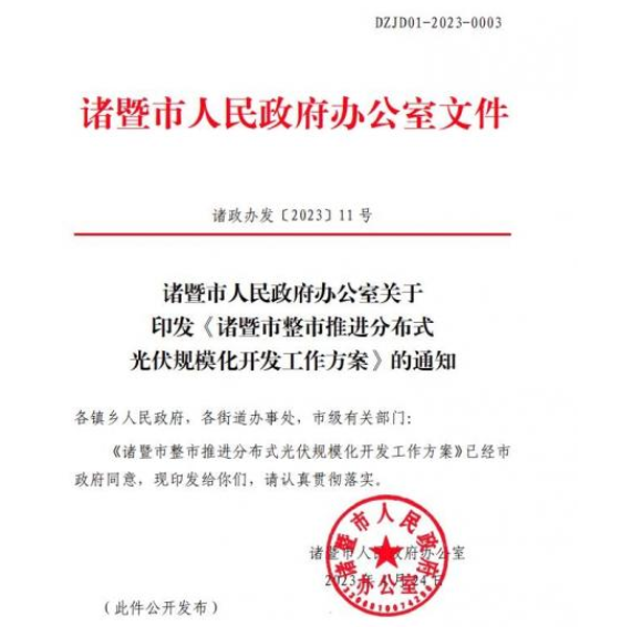 諸暨市整市推進(jìn)分布式光伏規(guī)?;_發(fā)工作方案
