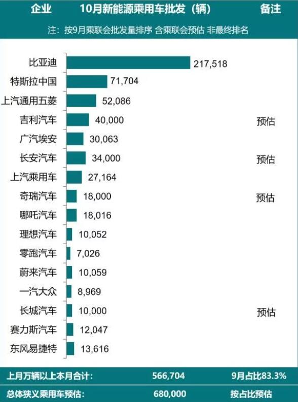 10月主力廠商新能源批發(fā)銷量 來源:乘聯(lián)會