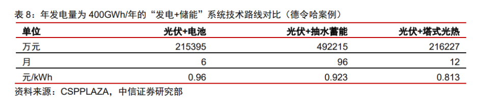 熔鹽儲能使用壽命可達(dá) 25-30 年,運(yùn)行穩(wěn)定性好、無爆炸、火災(zāi)等危險,具備安全友 好等特性。根據(jù)中控太陽能測算,光熱儲能調(diào)峰電站為光伏配置 20%熔鹽儲能服務(wù)可以有 效解決光伏棄光問題,同時在相同的儲能調(diào)峰補(bǔ)貼下,光伏+光熱儲能調(diào)峰電站的綜合上 網(wǎng)電價低于光伏+鋰電池儲能。 除光熱電站配套外,熔鹽儲能還可用于清潔供熱、提供工業(yè)蒸汽、火電靈活性改造等 方面。熔鹽儲能系統(tǒng)可以使用太陽能、谷電、工業(yè)余熱等方式加熱熔鹽工質(zhì)進(jìn)行儲存,在需求時段通過熔鹽放熱轉(zhuǎn)換為熱能實(shí)現(xiàn)工業(yè)蒸汽制備、建筑供熱等用途。以熔鹽儲熱供暖 系統(tǒng)為例,在夜間谷電時段可以通過谷電加熱熔鹽進(jìn)入高溫熔鹽罐,在用熱時段通過熔鹽 泵抽出高溫熔鹽與市政用水在換熱器中進(jìn)行熱交換為住宅小區(qū)提供熱水。熔鹽儲熱供暖系 統(tǒng)改造時只需要將燃煤鍋爐替換為熔鹽儲熱-加熱-換熱系統(tǒng),供水管道和末端設(shè)備可繼續(xù) 使用無需改造,改造建設(shè)成本較低;與電采暖相比,充分利用谷電加熱使運(yùn)行費(fèi)用大幅下 降,提高了供暖系統(tǒng)的經(jīng)濟(jì)性。