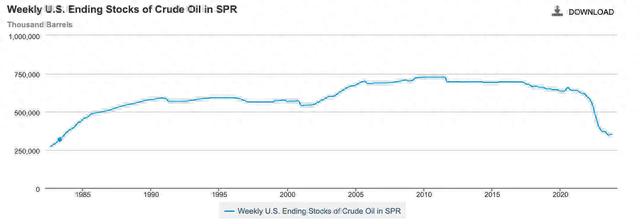 SPR是世界上最大的緊急石油儲備,通常用于穩(wěn)定原油供應。去年,在俄烏沖突爆發(fā)之后,美國政府從SPR中抽走了1.8億桶原油。