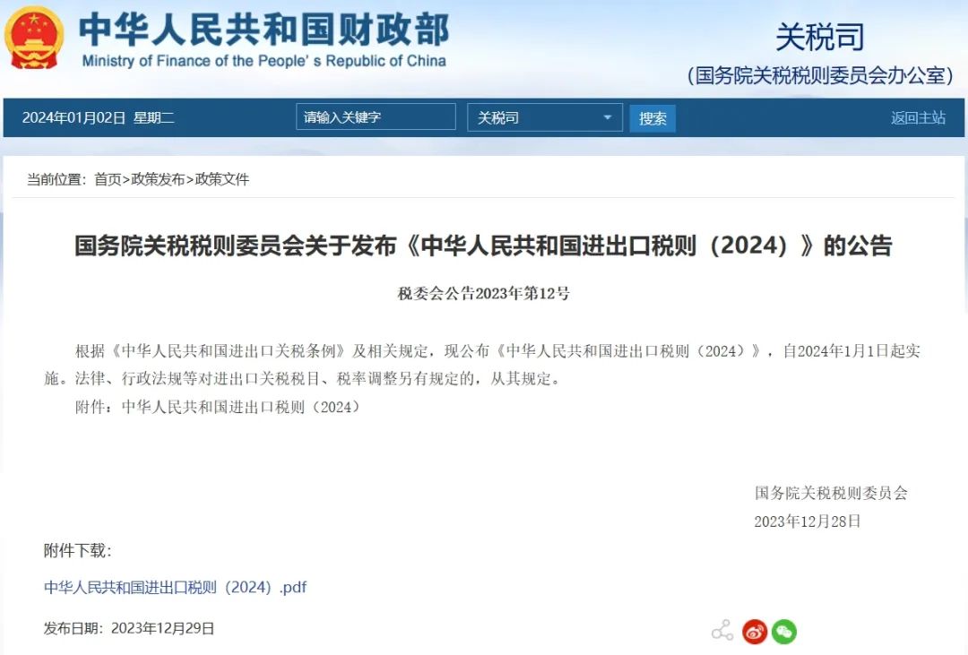2023年12月29日,國務院關稅稅則委員會公布《中華人民共和國進出口稅則(2024)》,自2024年1月1日起實施。相對于之前發(fā)布的公告,本次公布了進出口產品具體的稅則,其中包含煤炭。