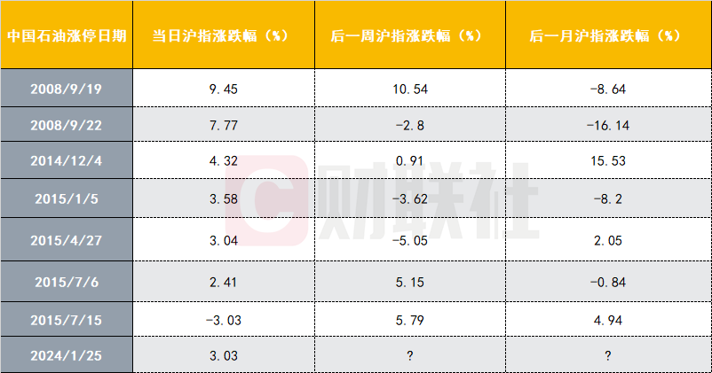 以下為財聯(lián)社總結(jié)中國石油歷次漲停情況