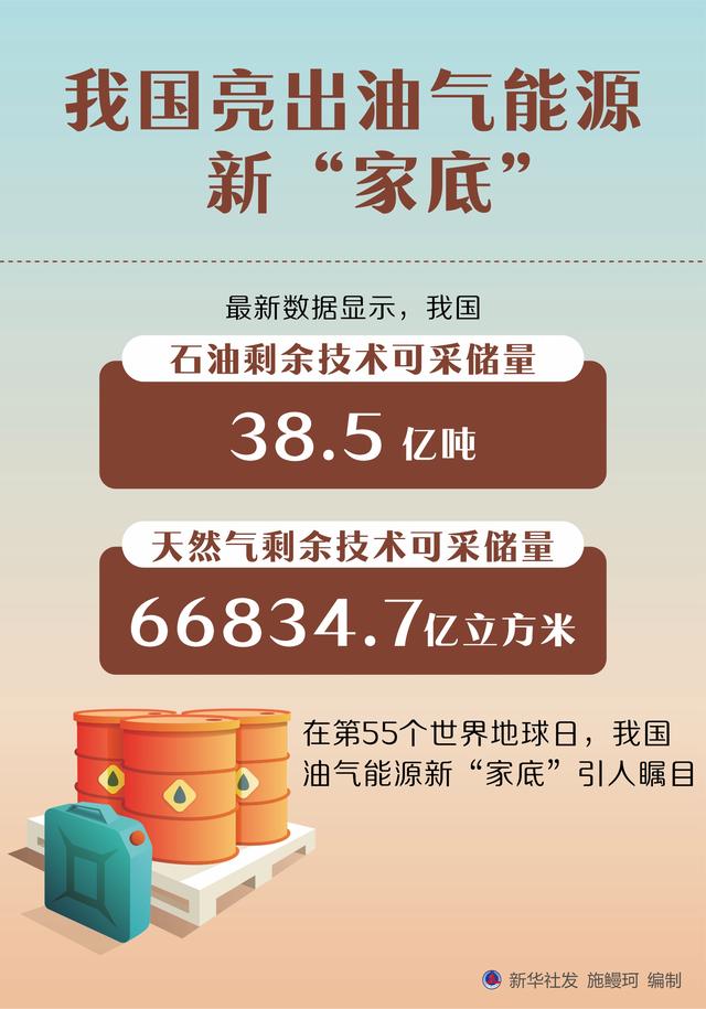 最新數(shù)據(jù)顯示,我國石油剩余技術(shù)可采儲量38.5億噸,天然氣剩余技術(shù)可采儲量66834.7億立方米。在第55個(gè)世界地球日,我國油氣能源新“家底”引人矚目。