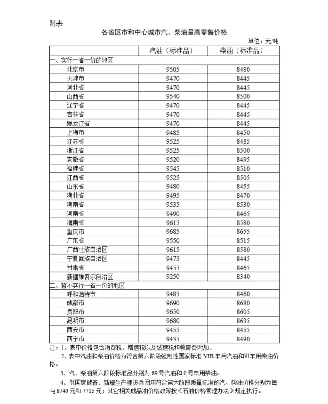 根據(jù)近期國際市場油價變化情況,按照現(xiàn)行成品油價格形成機制,自2025年2月19日24時起,國內(nèi)汽、柴油價格(標(biāo)準品,下同)每噸分別降低170元和160元。調(diào)整后,各省(區(qū)、市)和中心城市汽、柴油最高零售價格見附表。