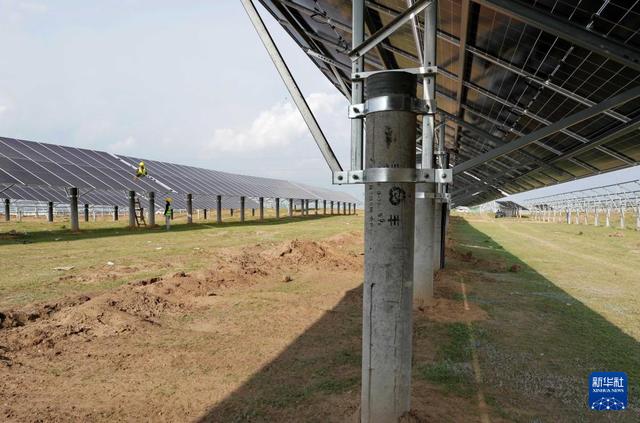 7月21日,工人在承德市豐寧滿族自治縣魚兒山鎮(zhèn)附近的一處光伏發(fā)電場建設工地工作。