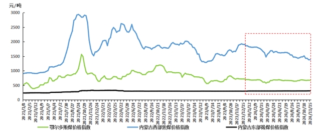 12月2日,內蒙古煤炭價格指數最新成果在2024年企業(yè)家博鰲論壇上正式發(fā)布。監(jiān)測結果顯示,2024年,在國內煤炭供需結構寬松背景下,內蒙古動力煤年內運行相對穩(wěn)定,但較上年均價有所下跌,西部焦煤價格在下游需求走弱背景下震蕩回落。