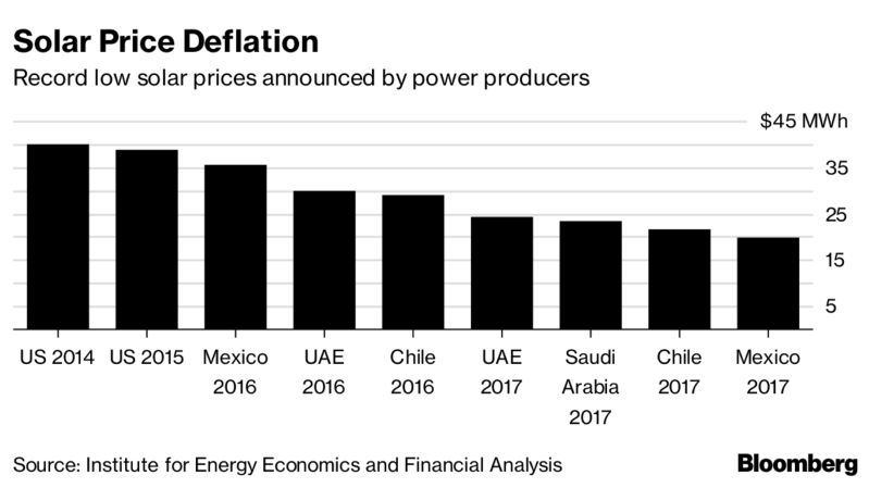 根據(jù)彭博新能源財(cái)經(jīng)數(shù)據(jù),IEEFA表示,2017年全球新增太陽(yáng)能裝機(jī)98吉瓦,中國(guó)占53吉瓦。同時(shí),發(fā)電資產(chǎn)使用期間的單位電力成本同比下降15%,至86美元/兆瓦時(shí)。