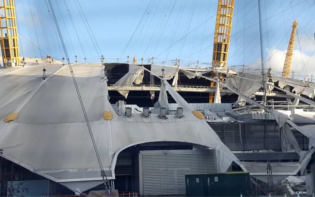 曾作為2012年倫敦奧運會主要賽事場館的倫敦O2體育館頂部織物被狂風(fēng)撕開,使該建筑部分內(nèi)部結(jié)構(gòu)外露。英國肯特郡的一座燃?xì)獍l(fā)電站則因風(fēng)暴而被迫關(guān)閉。據(jù)彭博社等媒體報道,在英國,一些路邊樹木被連根拔起,不少市民家窗戶亦被狂風(fēng)刮碎。