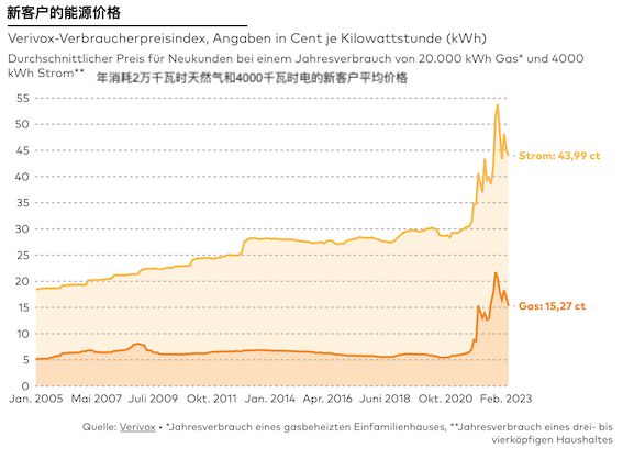 根據(jù)比較門戶網(wǎng)站 Verivox的數(shù)據(jù),盡管電力和天然氣的交換和批發(fā)價格較低,但只有極少數(shù)能源供應商通過現(xiàn)有合同將成本減少傳遞給最終消費者。