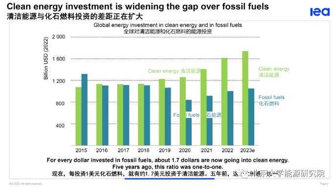 近日,國際能源署《2023世界能源投資》報(bào)告在北京發(fā)布。國際能源署首席能源經(jīng)濟(jì)學(xué)家Tim Gould介紹,五年前,清潔能源與化石能源的投資比為1:1,如今這一比例已擴(kuò)大至1.7:1。同時(shí),太陽能領(lǐng)域的投資將會(huì)在2023年首次超過石油生產(chǎn)投資。