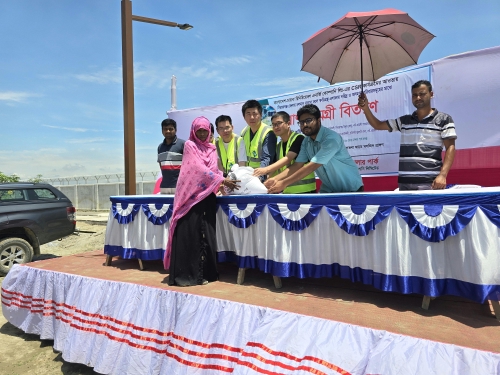 道阻且長(zhǎng),行則將至;知責(zé)于心,更要履責(zé)于行。面臨復(fù)雜的水陸河漫灘環(huán)境、沙地高樁技術(shù)難題、森林覆蓋率及雨季洪泛等難題,福建院與項(xiàng)目各方人員齊心協(xié)力,實(shí)現(xiàn)多項(xiàng)創(chuàng)新之舉。通過開創(chuàng)性地采用“高樁合縱”方案,有效避免了河漫灘水患影響,確保光伏高樁穩(wěn)固與美觀。開發(fā)的橇式光伏安裝工具,使得12米高空安裝光伏組件也可如履平地,刷新了孟加拉最高光伏組件樁的紀(jì)錄。在錫金水庫(kù)潰堤引起光伏區(qū)洪水沖擊期間,福建院迅速組織討論制作出施工浮船,有效解決風(fēng)浪影響和材料運(yùn)輸?shù)葐栴},大大節(jié)省施工時(shí)長(zhǎng),順利保障項(xiàng)目推進(jìn)與按時(shí)完工,以實(shí)際行動(dòng)踐行著央企的誠(chéng)信與擔(dān)當(dāng)。