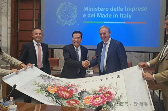 除明陽智能董事長張傳衛(wèi)與和Renexia總經(jīng)理Riccardo Toto外,意大利企業(yè)與“意大利制造”部部長Adolfo Urso、意大利環(huán)境和能源安全部負(fù)責(zé)人Antonio Scino也參與了本次重要的簽約儀式。