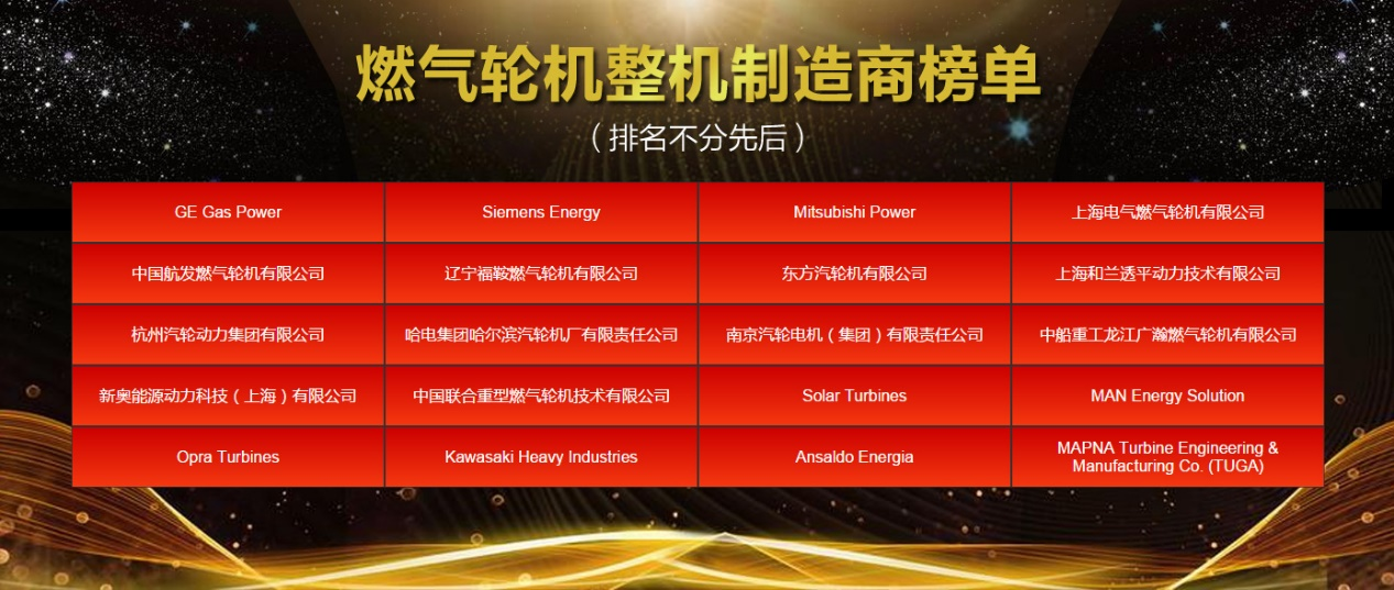全球燃?xì)廨啓C(jī)制造商老牌三巨頭、國內(nèi)三大動力集團(tuán)及國內(nèi)外部分新興燃?xì)廨啓C(jī)制造商共計(jì)20家企業(yè)上榜。