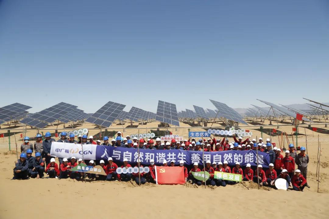 6月5日,第50個世界環(huán)境日之際,中國廣核集團(tuán)(簡稱中廣核)在內(nèi)蒙古庫布其沙漠朔方光伏電站組織開展“百人植樹”活動。兩年多以來,通過“板上發(fā)電、板下種植、板間養(yǎng)殖”的立體化新型產(chǎn)業(yè)循環(huán)方案,中廣核已在庫布其沙漠實(shí)現(xiàn)有效治沙2.7萬畝。