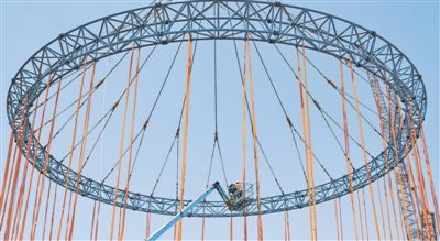 在“國和一號”示范工程某大型模塊吊裝現(xiàn)場,工人乘坐升降機(jī)檢查吊具。國家電力投資集團(tuán)有限公司供圖