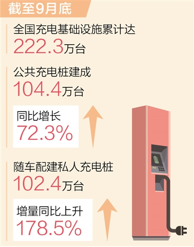 中國(guó)電動(dòng)汽車充電基礎(chǔ)設(shè)施促進(jìn)聯(lián)盟最新數(shù)據(jù)顯示,截至9月,全國(guó)充電基礎(chǔ)設(shè)施累計(jì)達(dá)222.3萬臺(tái),同比增長(zhǎng)56.8%。我國(guó)已建成全球最大規(guī)模充電設(shè)施網(wǎng)絡(luò)。